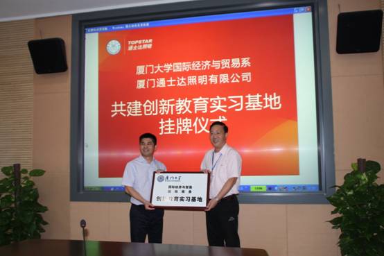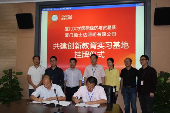 10月14日上午,厦门大学经济学院国际经济与贸易系与厦门通士达照明有限公司共建创新教育实习基地签约和挂牌仪式在厦门通士达照明有限公司举行。