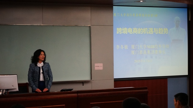 2015年1月6日下午四点半,厦门大学MIB校外导师、厦门嘉晟集团董事长李冬敏女士光临经济学院,在N302室为同学们作了一场主题为“跨境电商的机遇与趋势”的讲座。讲座由国际经济与贸易系张耕老师主持,众多经济学院的同学和老师参与其中。
