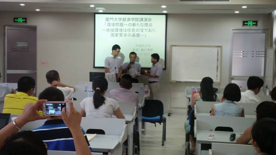 在简单介绍此次中国之行的目的以及自己目前担任的岗位之后,樋口清秀教授开始了这次讲座的正文部分。首先,他对当今世界存在的环境问题做了一个大致的阐述。他认为,环境问题的本质是人类经济活动的副产品。当今的环境问题已经不是一个国家特有的问题,而是涉及到人类生存与发展的世界性问题,应当引起高度重视。其次,关于经济活动为什么会导致环境问题的产生,樋口清秀教授运用微观经济学中的“公有地悲剧”这个原理来说明。在自由竞争的市场中,每一个经济个体都追求自我利益最大化,无节制地扩大自身可使用资源,从而导致了环境问题的产生。此外,企业为了在市场中获得竞争优势,常会采取大规模生产的方式来降低产品成本,引发卖不出去的多余产品如何进行处置的问题。他指出,目前大多数厂家无法做到绿色处理,因此这也成为了导致环境问题的主要原因之一。随后,樋口清秀教授针对经济活动导致环境问题的解决方案进行了阐述。他详细讲解了“谁污染,谁付费”的污染者承担原则,即制造污染的企业或个人要为所产生相应的污染治理费用买单。他用日本的垃圾分类收费作为例子,对这个解决方案进行详细说明,同时还强调了合理制定费用的重要性。此外,他还重点介绍了“环境循环论”,这个理论包括了“浪费很可惜”以及“垃圾很宝贝”两个观点。从浪费行为这个“源头”以及垃圾处理这个“终点”,一头一尾两个角度对处置环境问题进行了说明。最后,樋口清秀教授指出,未来改善环境问题的关键在于遵循儒家“仁、义、礼、治、信”的思想,主张天人合一,才能做到人与自然和谐发展。在随后的问答环节,部分同学就中国的环境问题、日本的海洋环境污染治理等问题发表了自己的看法,樋口清秀教授一一给予耐心的解答。讲座在热烈的掌声中圆满结束。(国际经济与贸易系 林羡)