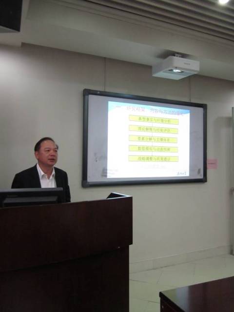 项目首席专家黄建忠教授在会上作了开题论证报告,就项目的研究背景与意义、总体框架、主要内容、研究思路、基本观点、预期目标、研究手段与方法、调研计划,重点难点问题、主要创新和特色、研究分工与进度安排、前期成果等做了详细的论述。