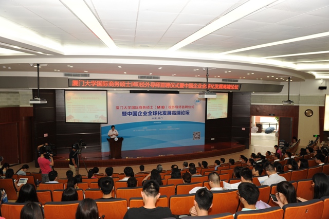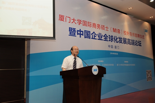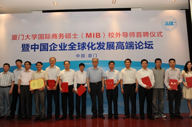 在当今世界经济复杂多变、全球市场需求不振、企业国际化竞争日益激烈的世界经济发展新趋势下,中国企业尤其是厦门企业应该如何坚持“走出去”的全球化发展道路,不断发掘商机、开拓国际市场?如何进一步培养知悉国际商务发展动态的高端商务人才?6月3日下午,由厦门大学经济学院、王亚南经济研究院(WISE)主办,厦门大学经济学院国际经济与贸易系承办的“厦门大学国际商务硕士(MIB)校外导师首聘仪式暨中国企业全球化发展高端论坛”在我校经济楼N402报告厅举行。