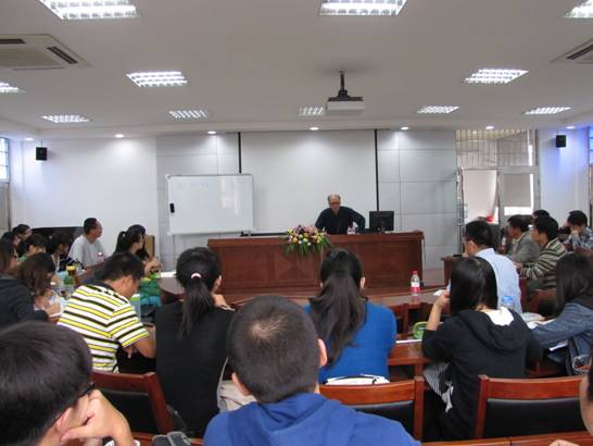 11月12日,我系荣幸邀请到著名经济学家、中国社会科学院特聘顾问王洛林教授做客国际经贸名人论坛第146讲。讲座于上午8时在经济学院A501教室正式开始,主题是关于“当前经济形势的几个问题”的探讨。讲座由系主任郑甘澍教授主持,黄建忠教授、张明志教授、彭水军教授等老师参加了讲座。