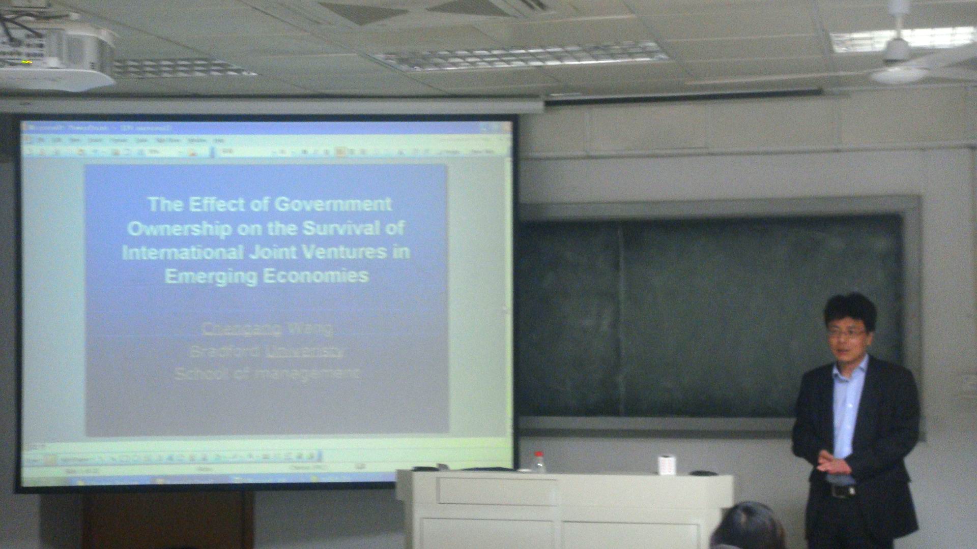 2011年12月15日下午,由厦门大学国际经济与贸易系主办的“国际经济贸易名人论坛”141讲如期举行。来自英国布拉福德大学的王晨刚教授在此次论坛中报告了其最新研究成果:“政府参股对新兴经济体合资企业生存的影响:基于中国合资企业的经验分析”。本次论坛由国际经济与贸易系副系主任张明志教授主持,国经贸系师生积极参与了此次论坛。