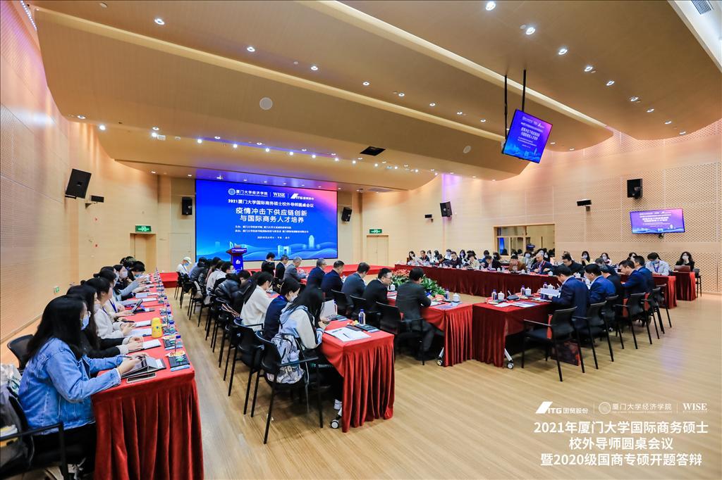 12月18日,“2021年厦门大学国际商务硕士校外导师圆桌会议暨2020级国商专硕开题答辩”在厦门国贸中心大厦和厦门大学经济楼成功举办。