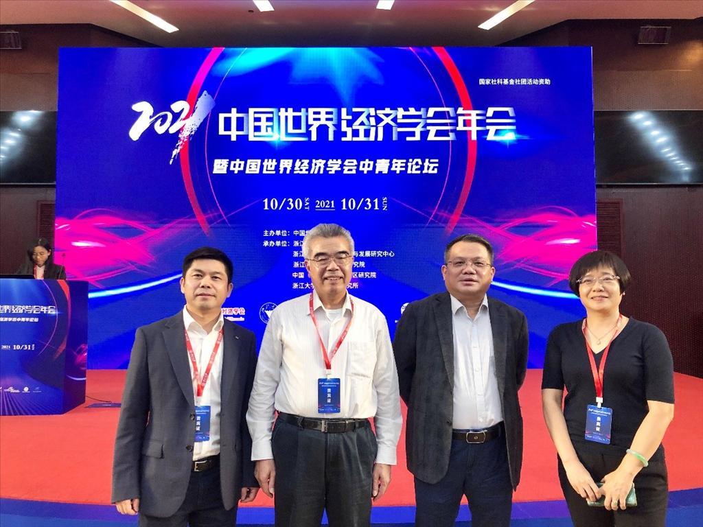 近日,中国世界经济学会2021年年会暨第十二次会员代表大会在浙江大学举行。本次年会由浙江大学经济学院承办,主题为“世界经济新发展趋势与‘双循环’新发展格局”。年会得到了国家社科基金社团活动资助。为配合当前疫情防控要求,本次年会采取线下和线上相结合的方式。我院庄宗明教授做了“王亚南‘世界经济研究’的启示”大会主题演讲,彭水军教授做了大会主题演讲的同行点评,林季红、陈雯等教授通过主持及论文报告等形式参加了会议。