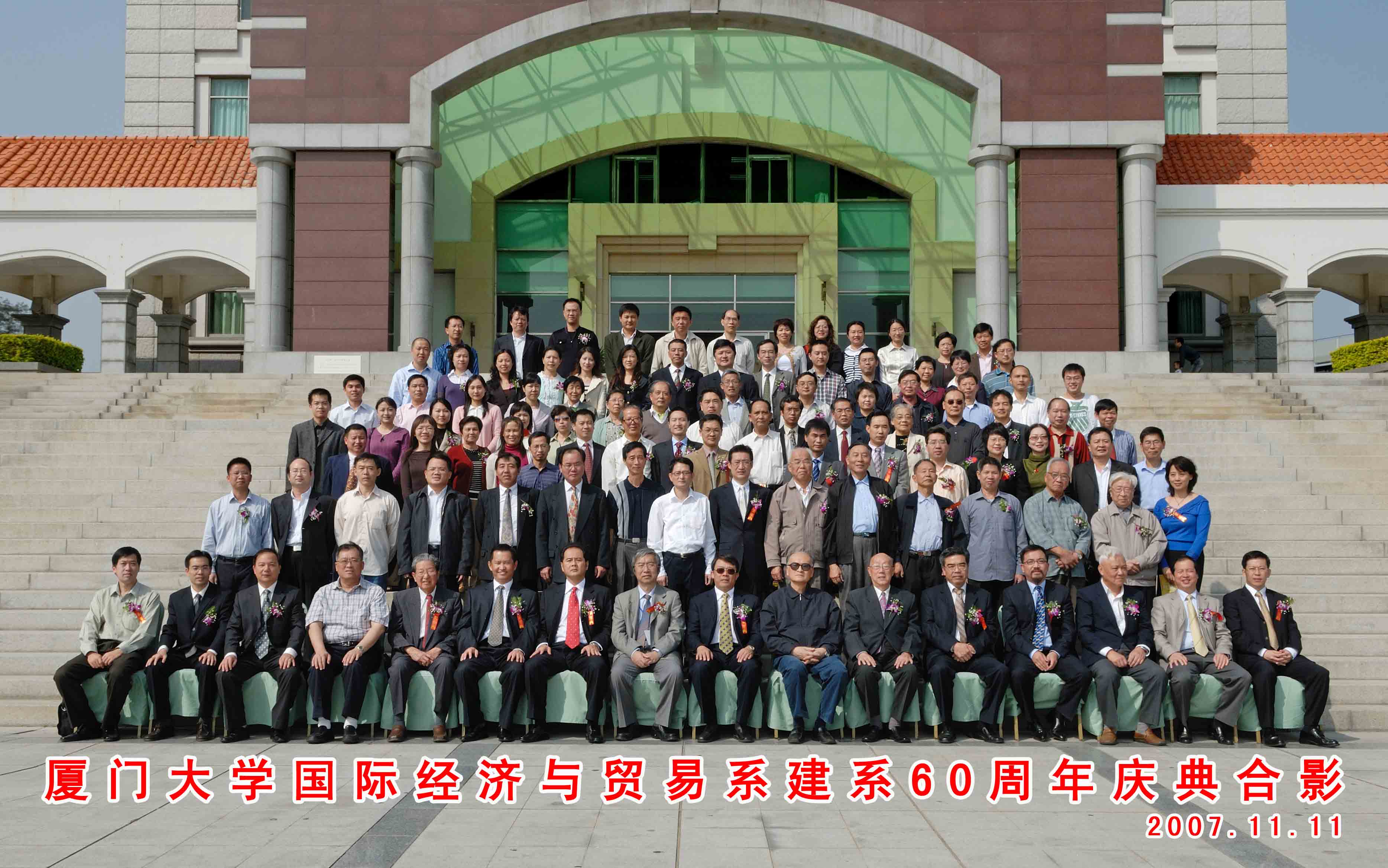 2007年11月11日,国际经济与贸易系建系60周年庆典在厦门大学克立楼报告厅隆重举行。出席庆典的有:著名经济学家、国际经贸系系友、中国社科院原常务副院长王洛林教授,国际经贸系系友、厦门大学党委朱之文书记,著名经济学家、中国世界经济学会会长、中国社科院世经政所所长余永定教授,中国国际贸易学会发起创始人、国际经贸系原系主任魏嵩寿教授,国际经贸系系友、厦门国家会计学院院长邓力平教授,国务院学科评议组成员、厦门大学校长助理、国际经贸系庄宗明教授,厦门大学经济学院党委书记雷根强教授,菲律宾《清源奖》基金会理事长黄育新先生,国际经贸系系友、翰名教育基金会发起人兼理事长萧恩明先生,国际经贸系系友、福建省台办副主任吴国盛博士,国际经贸系1947级系友、原轻工业部外事司副司局级离休干部林孟忠先生等领导、嘉宾、海内外系友代表,国际经贸系全体教师和学生代表300余人出席庆典。庆典由经济学院党委孙梓光副书记主持。