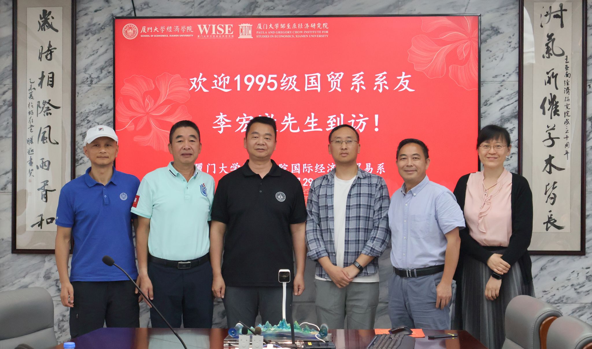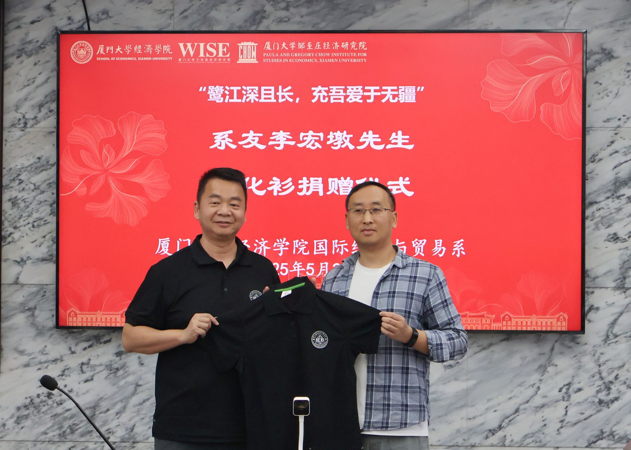 2025年5月29日,厦门大学经济学院国际经济与贸易系迎来 1995 级系友李宏墩先生返校,并携千件定制文化衫重返母校,以"衣"传情反哺教育,搭建起校友企业与高校间的协同育人新桥梁。